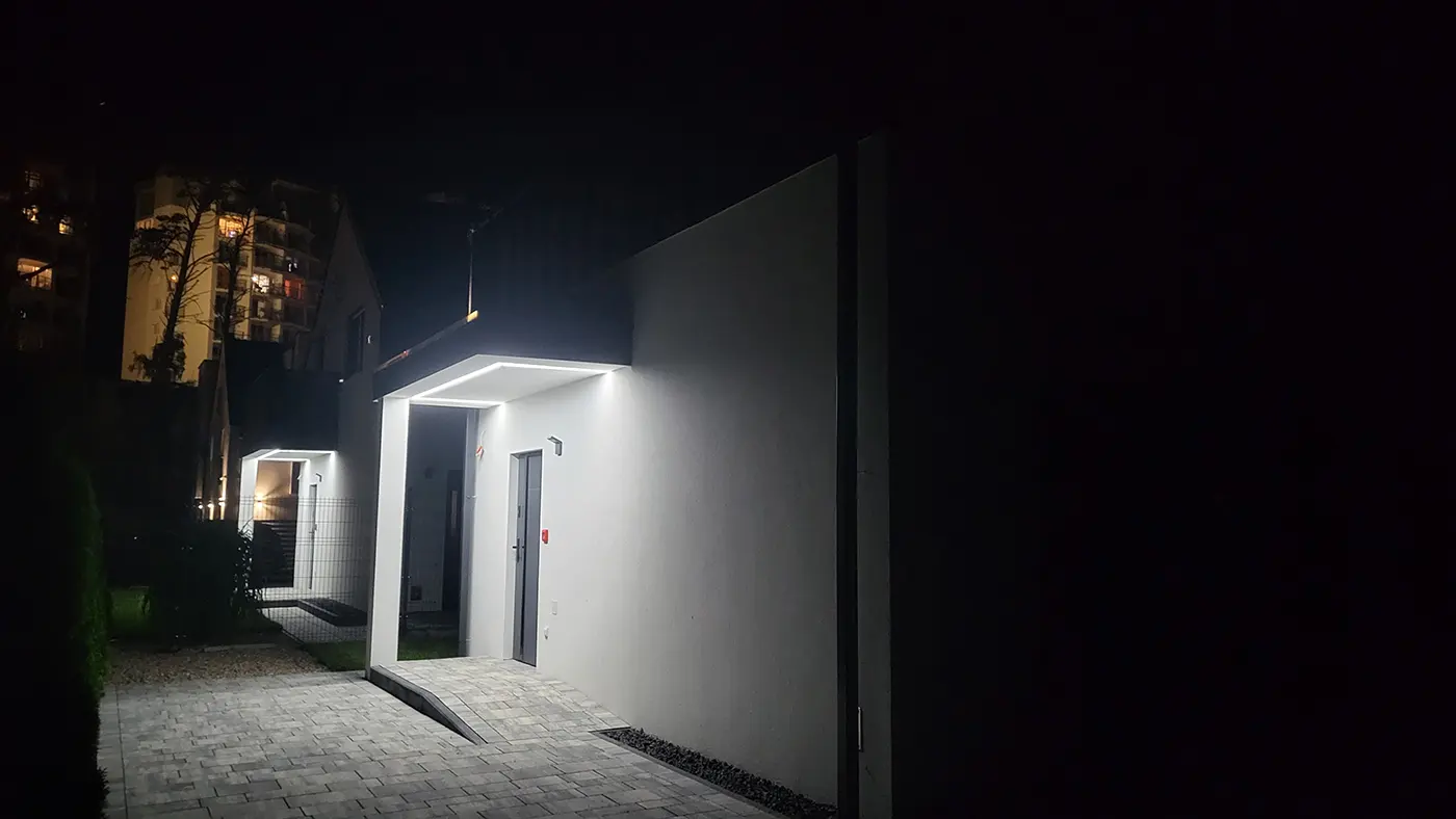 - Instalacja elektryczna wewnętrzna ok. 60 punktów, TV, alarmowa, do kamer oraz na zewnątrz budynku do ładowarki samochodowej, oświetlenia ogrodu, nawodnienia ogrodu